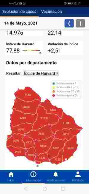 De los 3.316 casos nuevos, 1.463 son de Montevideo, 482 de Canelones, 218 de Salto, 167 de Maldonado, 137 de Tacuarembó, 129 de San José, 124 de Paysandú, 99 de Colonia, 88 de Soriano, 72 de Artigas, 64 de Río Negro, 61 de Durazno, 47 de Florida, 40 de Rivera, 29 de Rocha, 28 de Cerro Largo, 25 de Flores, 22 de Lavalleja y 21 de Treinta y Tres.