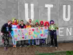 Siguiendo la teoría de Patch Adams, un médico estadounidense que asegura que «la risa todo lo cura», se vistieron de payasos y han recorrido la ciudad entregando frases positivas a las personas, dejando mensajes sobre la vida, entregando globos, sacándoles una sonrisa.
