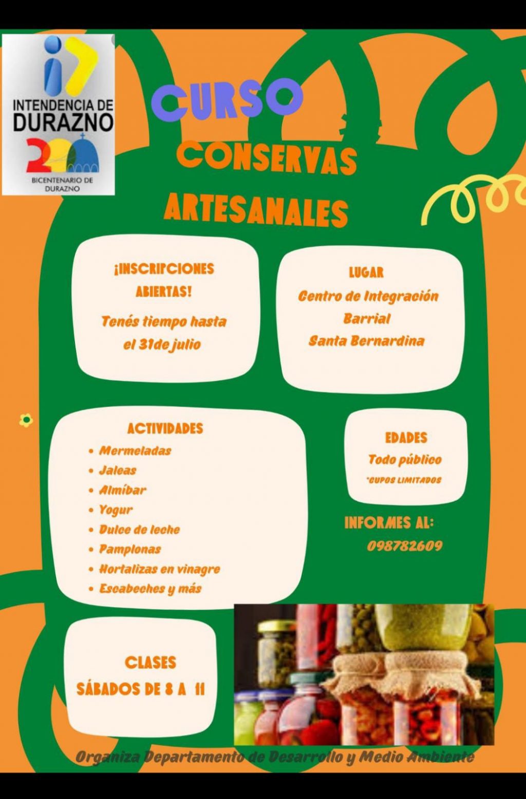 El curso es sobre Conservas Artesanales, con elaboración de mermeladas, jaleas, almíbar, yogur, dulce de leche, pamplonas, hortalizas en vinagre, escabeches y mas.