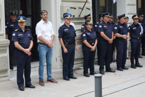 El acto se desarrolló en el frente de Jefatura con la presencia del Ministro del Interior Dr. Nicolás Martinelli y autoridades de la Dirección de la Policía Nacional.