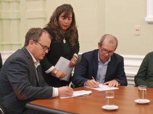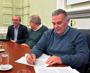 El acuerdo transaccional fue firmado por el Intendente Lic. Carmelo Vidalín; Secretario General, Dr. Andrés Lesa; Dr. Federico Ferrán, en representación de Walter Ariel Hoffman (Larilux S.A.); Alejandro Gedanke y Rodrigo San Martín, por República Afisa, en presencia además el Director de Hacienda, Cr. Sebastián Erviti, representantes legales de las partes y la escribana de la IDD, Adriana Avila.
