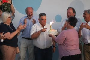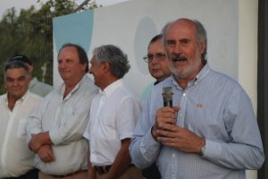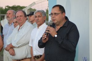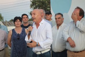 de deporte comunitario de la Secretaría Nacional de Deportes, el Ing. Benjamín Irazábal, sub director de la OPP y el Intendente Carmelo Vidalín, a quien previamente los vecinos le obsequiaron una torta con motivo de que estaba cumpliendo años.