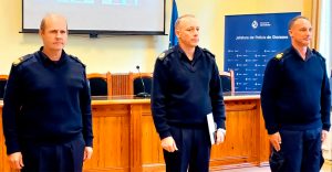 Este martes 3 de mayo, el jefe de Policía de Durazno, Crio. Gral. (R) Richard Marcenal, impuso en el cargo al subjefe de Policía, Crio. Mayor Crisoldo Caraballo y al coordinador ejecutivo, Crio. Mayor, Fernando Noble.