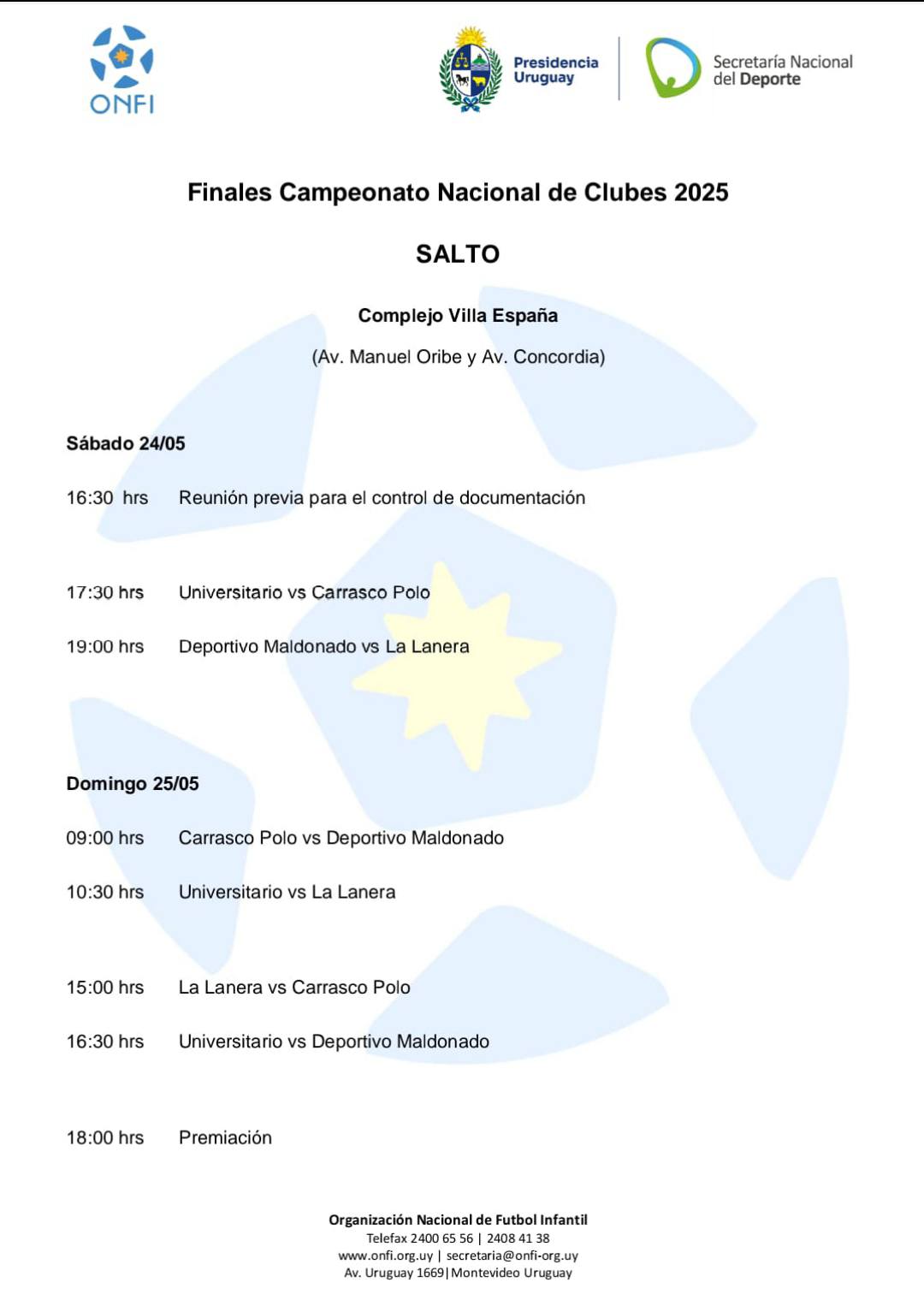 Desde las 19.00hs. los orientados por Mirko Román con la asistencia técnica de Marcelo Faris y la supervisión general de Bartolo Barrios, comienzan a disputar las finales Nacionales frente a Deportivo Maldonado, del Campeonato organizado por ONFI. Nuestra delegación viaja con mucho optimismo de tener una gran experiencia y dejar todo por la conquista del primer lugar en el podio.