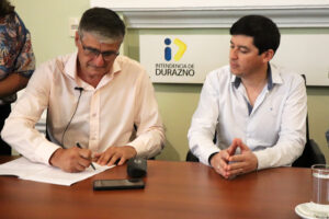 Intendente Interino de Durazno, Dr. Diego Ávila, el secretario general, Dr. Andrés Lesa, la Coordinadora General, Sonia Martínez, y el Coordinador de Turismo, Andrés Viana. Su participación destaca el compromiso de la Intendencia de Durazno en fortalecer este tipo de acuerdos que impulsan la cultura y la integración regional.