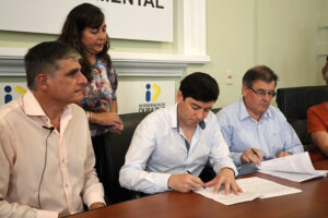 Durante el acto de firma del hermanamiento, estuvieron presentes el Intendente de la Municipalidad de Cosquín Oficial Dr. Raúl Cardinali, el