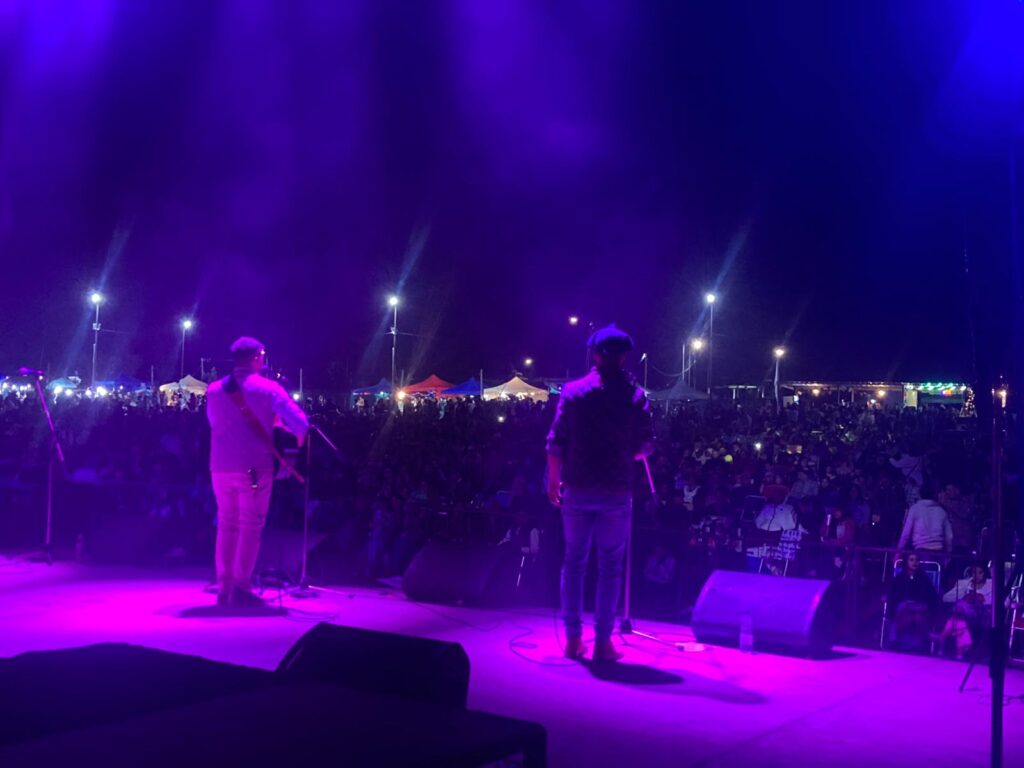 Se viene cumpliendo la primera hora del Festival del Rosedal nro. 19. En foto la actuación de Cruza Caminos, el dúo que fue el premio de revelación de Durazno.