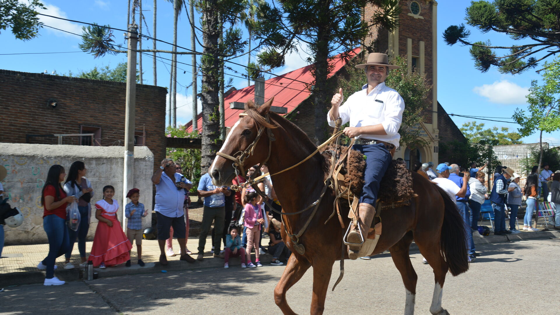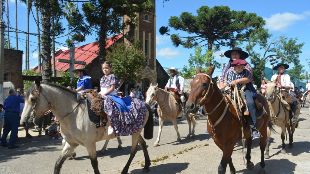 Pronto repican los primeros cascos sobre el asfalto urbano. El viejo puente sobre el río Tacuarembó, va quedando atrás. Desde lejos se percibe una fuerza estremecedora. En las veredas de la ciudad el pueblo se concentra. Nadie quiere perder detalle. Asoman los primeros jinetes bajo una salva de aplausos. La aparición de más de cuatro mil jinetes es un espectáculo imponente. No hay otra actividad ecuestre en Uruguay más numerosa en participantes que el Desfile de la Patria Gaucha.