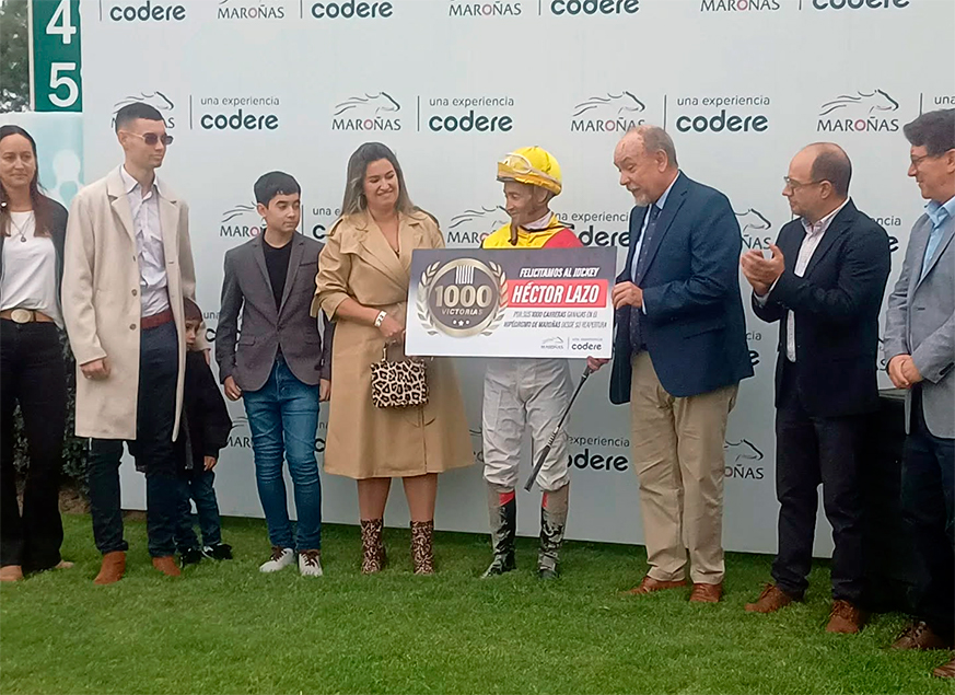 Héctor Lazo ganó hoy en el Hipódromo de Maroñas su carrera número 1000.