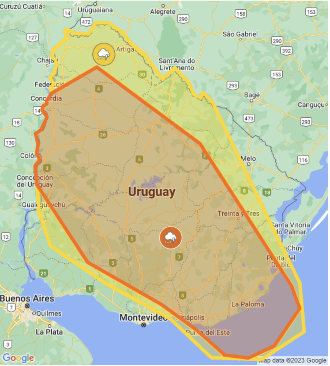 Hace momentos comenzó a llover sobre la ciudad de Durazno mientras rige una alerta naranja para gran parte del país.