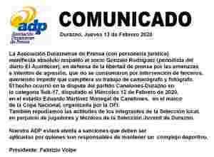Actualidad Prensa Declaración de la ADP Jesus Carlos Correa 13/02/2020 Recibimos y publicamos de la Asociación Duraznense de Prensa.Comparte esto: Haz clic para compartir en Facebook (Se abre en una ventana nueva) Facebook Haz clic para compartir en X (Se abre en una ventana nueva) X Me gusta esto:Me gusta Cargando...Navegación de entradasPrevious: Novedades policialesNext: Sigue el Torneo de los Barrios Relacionados Actualidad Seguridad: trascendente encuentro entre comunicadores y autoridades Jesus Carlos Correa 16/12/2025 Actualidad MATTEO MOREIRA: Duraznense logra completar las 7 maravillas del Mundo Mauricio López 16/12/2025 Actualidad 22 familias escrituraron sus viviendas Jesus Carlos Correa 15/12/2025
