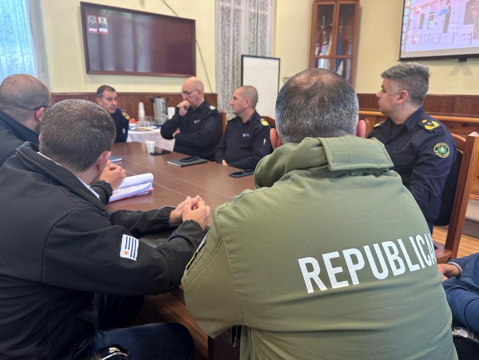 Autoridades de la Policía Nacional encabezadas por el Subdirector Ejecutivo, Comisario General (R) Efraín Abreu, se reunieron este jueves en Durazno con el Comando de la Jefatura local, el Departamento de Homicidios de la Dirección de Investigaciones de la Policía Nacional, la Guardia Republicana, la Unidad de Apoyo Táctico Especial (UNATED) y representantes del Centro de Comando Unificado.